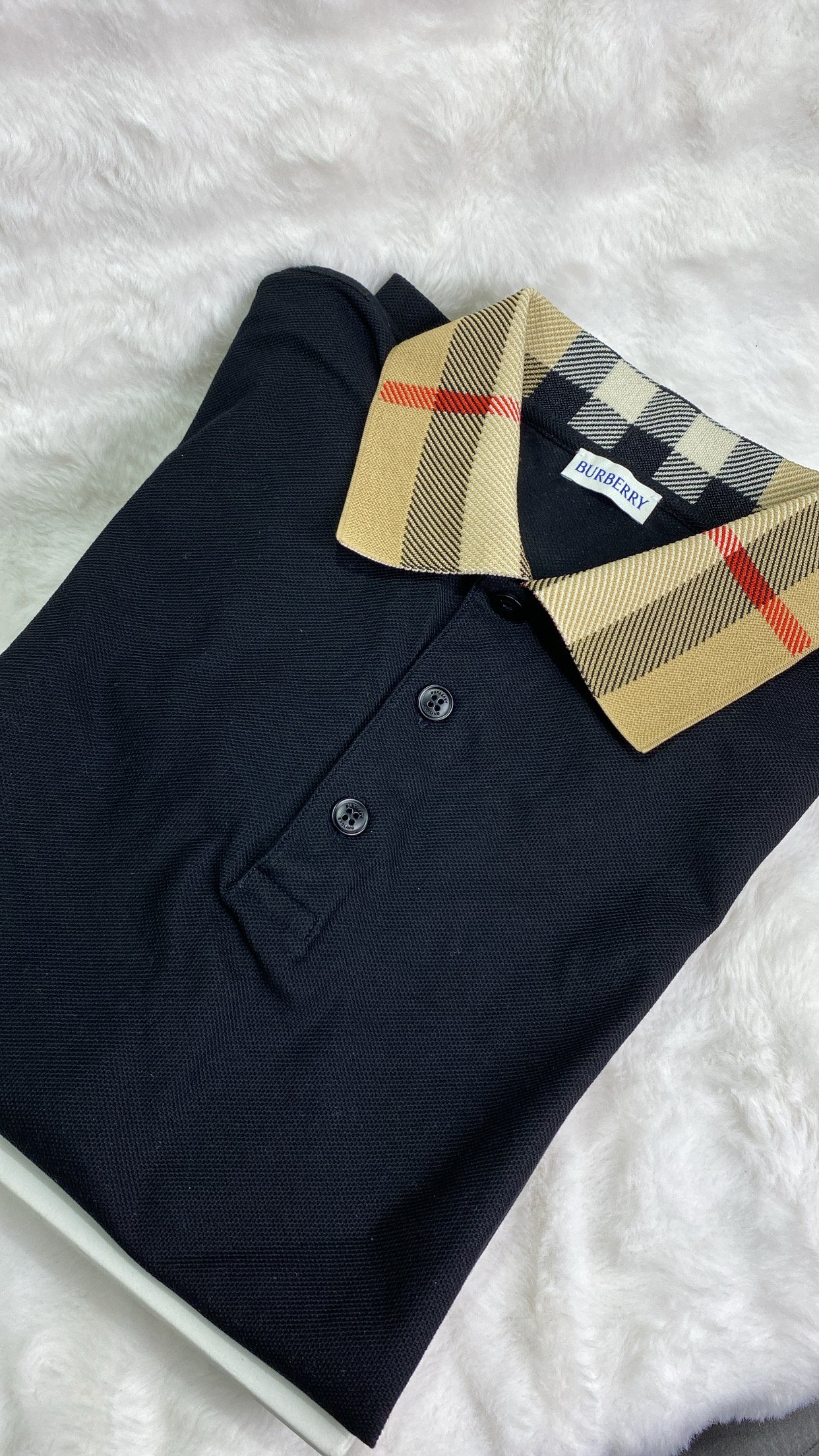 Burberry Black cotton pique Polo with checkered collar logo – CA1831