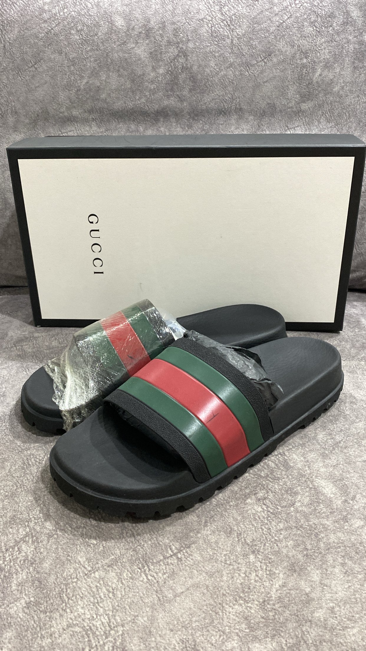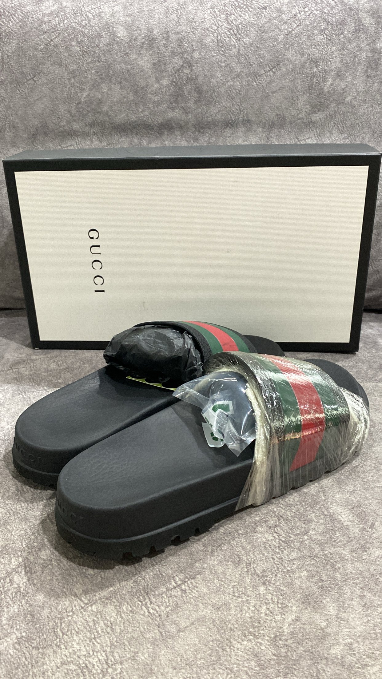 Gucci Slide Black Web Stripes – S693